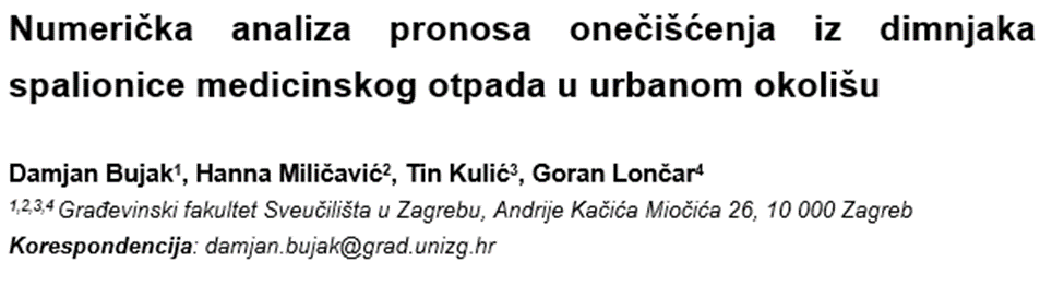 Tim stručnjaka s Građevinskog fakulteta u Zagrebu upotrijebio je podatke koje je KBC-Rebro dostavio u Studiji utjecaja na okoliš (SUO) predviđene spalionice infektivnog otpada [1] i te podatke iz sustava Aladin-Hr o vjetrovima na lokaciji, te proveo simulacije širenja onečišćenja iz dimnjaka spalionice koja se predlaže sagraditi u prostoru bolnice Rebro. Znastveni članak s prikazom simulacija, analizom, i diskusijom objavljen u znanstveno-stručnom časopisu Građevinar koji izdaje Hrvatski savez građevinskih inženjera. Sažetak i puni tekst članka (PDF) možete naći na mrežnim stranicama časopisa ili pomoću ove DOI poveznice.